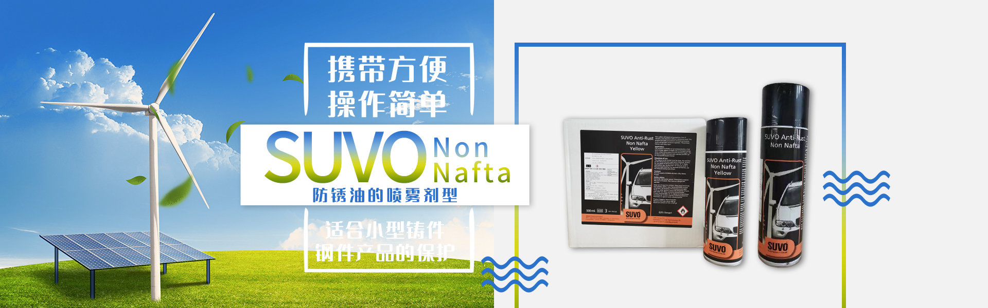 該產(chǎn)品為Non Nafta防銹油的噴霧劑型。適合對(duì)小型鑄件、鋼件產(chǎn)品的保護(hù);同時(shí)噴罐帶有細(xì)長(zhǎng)噴嘴,容易進(jìn)入鋼件或鑄件的小孔、內(nèi)腔等難以用刷子涂刷的地方。本品也非常適用于野外環(huán)境下小范圍檢修后對(duì)金屬部件的補(bǔ)防,攜帶方便、操作簡(jiǎn)單。